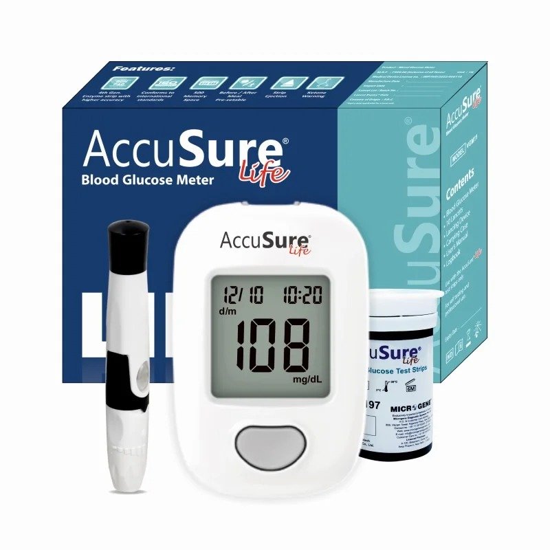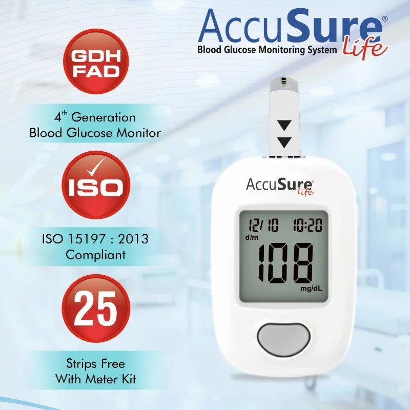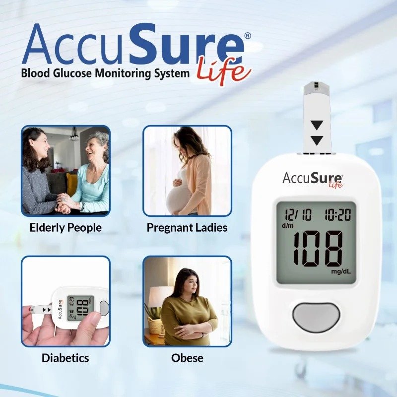 Take charge of your diabetes care with the AccuSure Life Blood Glucometer from AccuSure, built for simplicity, reliability, and precision. Designed to work seamlessly with accusure blood glucose test strips, this device ensures higher accuracy through advanced 4th-generation enzyme technology that meets international testing standards.