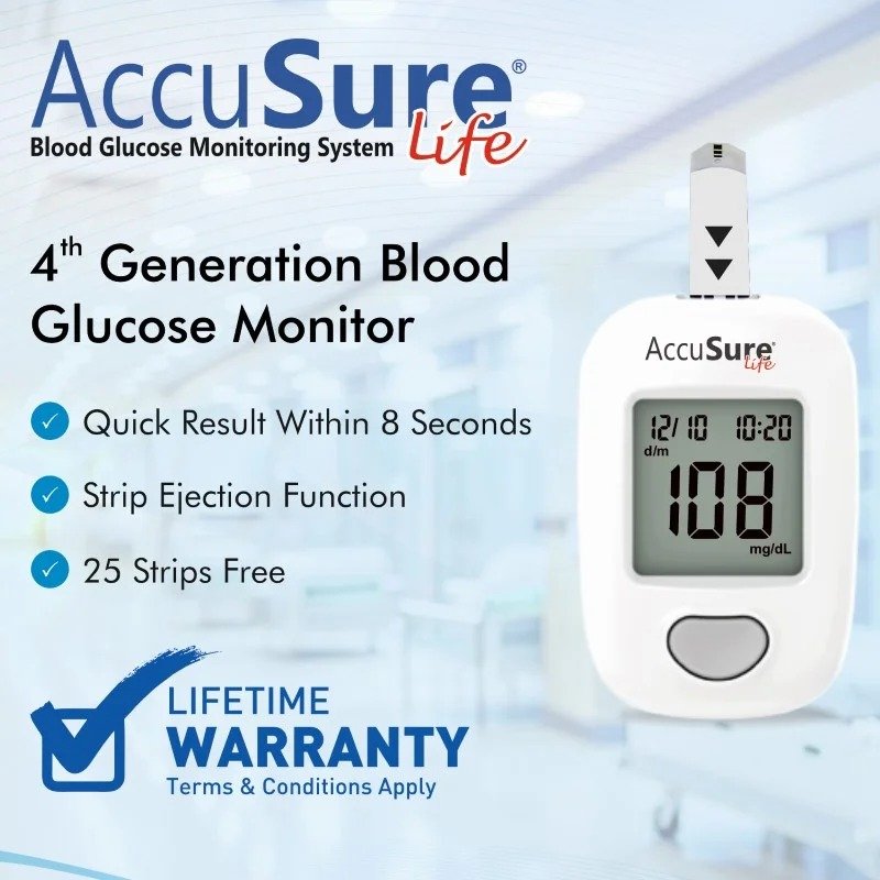 Backed by the trusted quality promise of AccuSure and a lifetime warranty (T&C apply), the Life Glucometer is a dependable partner for smart diabetes management.